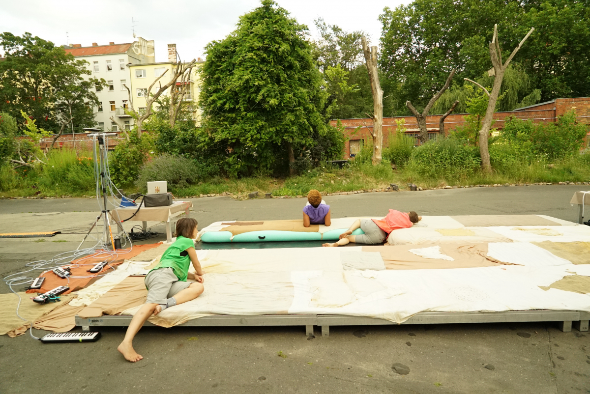 Eine Tanzperformance für 5 Luftbetten, 3 Performer*innen, 8,5 Melodicas, 1 Musikerin, X Mütter*, 1 Frischeluft und 1 Sorgechor